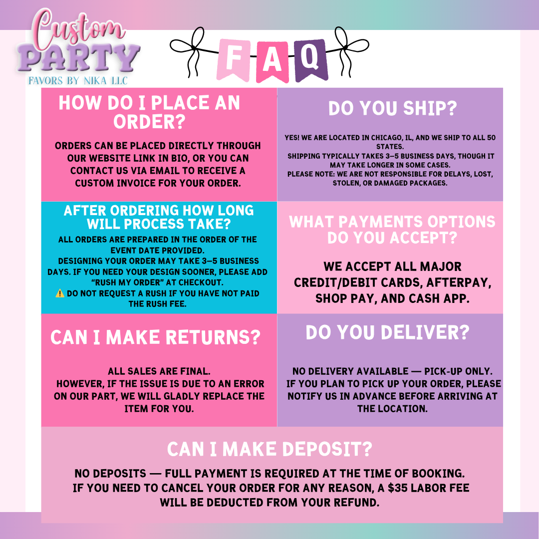 📱 Follow us on Instagram/Facebook/TikTok: @ Custom Party Favors By Nika LLC